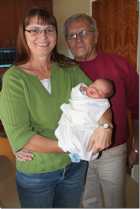 That evening Grandma Sharon & Grandpa Jim came to visit. Grandpa Jim wasn’t able to meet Avery right away ‘cause he was sick, so this was their first meeting.